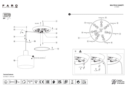 FARO_Barcelona - CLAIRE 7L Black pendant lamp - 62802-7L